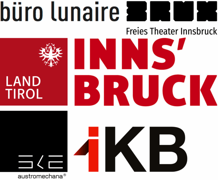 Vielen Dank an büro lunaire für die Konzipierung und Umsetzung dieses wertvollen multimedialen, inklusiven Kultur-Projekts. Danke an das BRUX / Freies Theater Innsbruck für die Bereitstellung der barrierefreien Spielfläche zu besonders günstigen Konditionen. Herzlichen Dank an das Land Tirol, die Stadt Innsbruck, SKE / austro mechana und die IKB für ihre finanzielle Unterstützung – gemeinsam machen diese Partner das Projekt möglich.