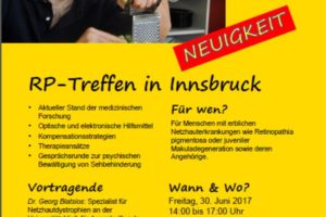 Aktuellen Stand der medizinischen Forschung Therapieansätze Optische und elektronische Hilfsmittel Kompensationsstrategien Gesprächsrunde zur psychischen Bewältigung von Sehbehinderung Für wen? Für Menschen mit erblichen Netzhauterkrankungen wie Retinopathia pigmentosa oder juveniler Makuladegeneration sowie deren Angehörige. Vortragende Dr. Georg Blatsios, Spezialist für Netzhautdystrophien […]