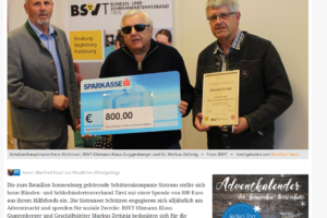 Spendenübergabe am 18.4.2018 in Wörgl Sinnesreise für den guten Zweck – HERZLICHEN DANK! Wir sagen herzlich DANKE im Namen unseres Obmannes und des gesamten BSVT an das Projektteam für die Spende von 700 Euro! Am Donnerstag, 14. Dezember, fand […]